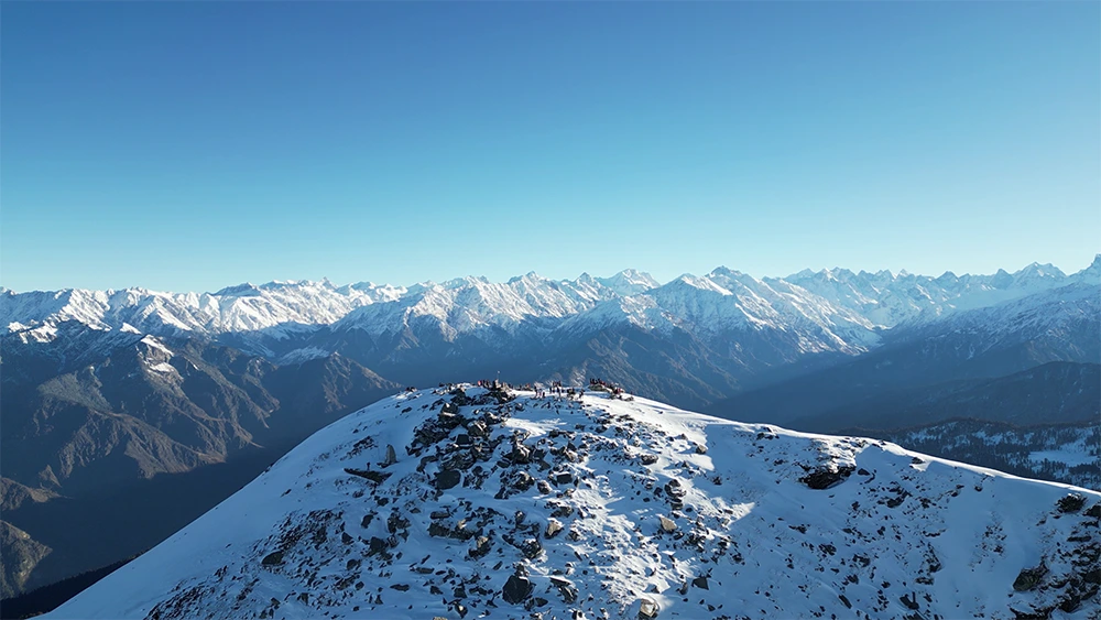 January and February bring the heaviest snowfall of the season. Snow depths on the upper trail and summit can reach 3 to 4 feet, and temperatures at camp drop to between -10°C and 0°C at night. This is the most demanding and most rewarding time on the mountain, ideal for experienced cold-weather trekkers who are well-equipped and have prior high-altitude experience. The summit views in January and February, on a clear morning, are among the finest available on any moderate-difficulty trek in India.