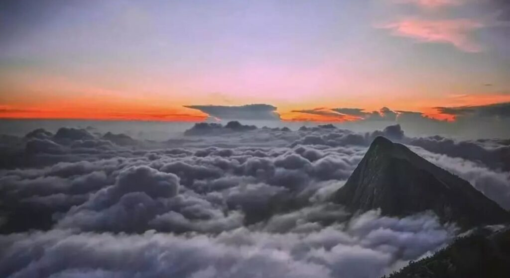 The sunrise from Kolukkumalai is the centrepiece of any visit. Departing from Suryanelli by jeep at around 4:00–4:30 AM brings you to the sunrise drop-off point by approximately 6:00–6:15 AM. From there, a short 15-minute trek leads to the sunrise viewpoint. The sight of the sun emerging from a sea of clouds over the Western Ghats, with the plains of Tamil Nadu glittering below, is genuinely unforgettable. Clear weather between November and February offers the best sunrise visibility. The nearby Tiger-Faced Rock — a natural rock formation resembling a tiger’s head — is another popular stop along the trek, with a clear view of the Meesapulimala peak behind it.