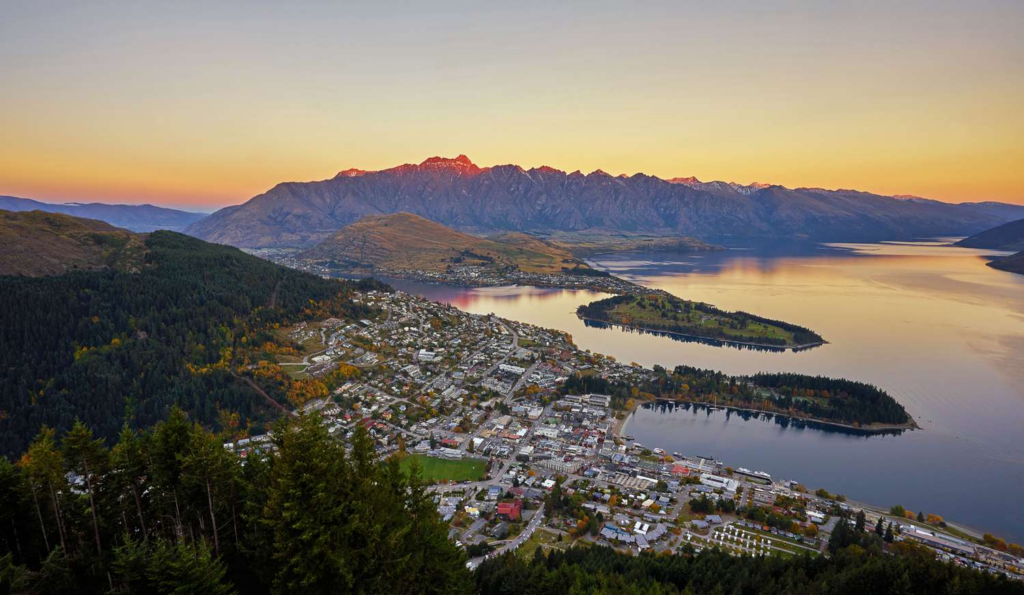 - Queenstown: Adventure capital of New Zealand on the shores of Lake Wakatipu, surrounded by the Remarkables mountain range. Bungee jumping, skiing, and hiking all from one base.