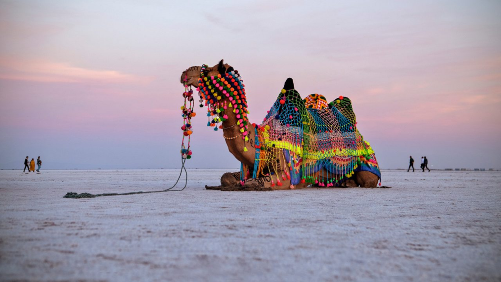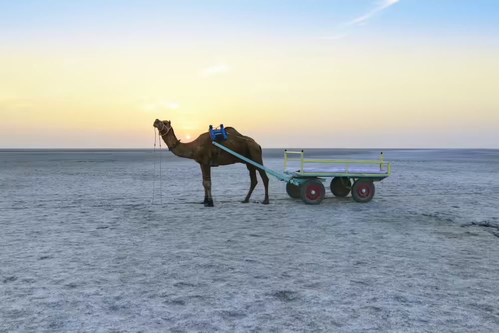 - White Rann at Dhordo: The defining Kutch experience. Walking on the salt flats at sunset and sunrise, camel cart rides across the white desert, and full moon nights under an open sky.