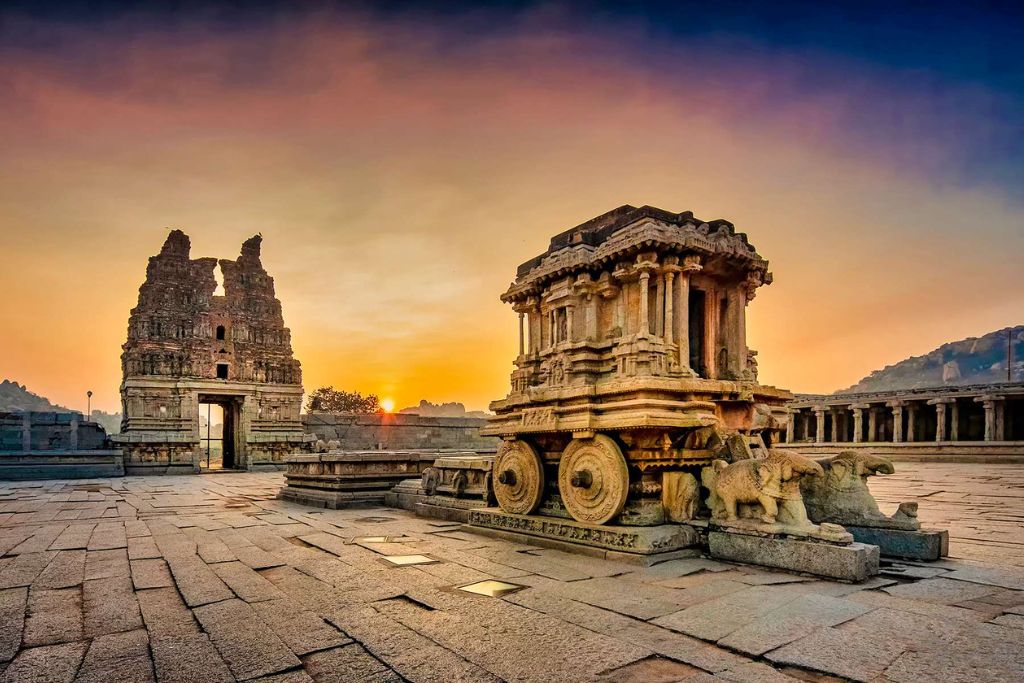 - Dawn cycles (INR 100) from Hampi Bazaar; Vittala stone chariot wheels “turn” unlocked.